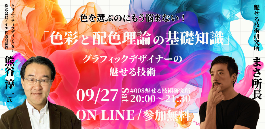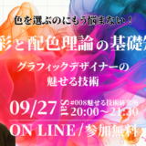 この度、魅せる技術研究所さん主催で「【参加無料】色を選ぶのにもう悩まない! 〜色彩と配色理論の基礎知識〜 」というオンラインセミナーを開催することになりました。